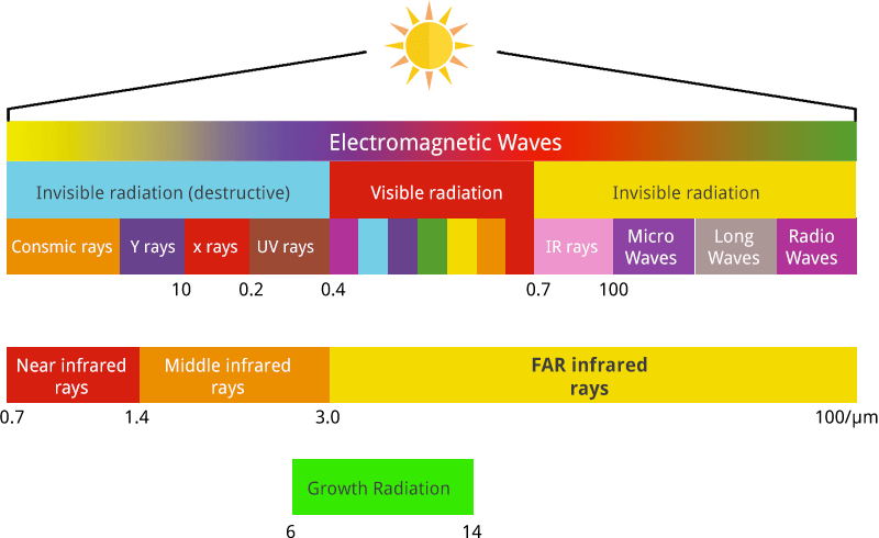 Far infrared (FIR) radiation is an IR subdivision of the electromagnetic spectrum and has wellness effects, mostly within the sub-range of roughly 3-12µm (biological window).
